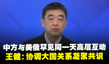 中方与美俄罕见同一天高层互动,王健:协调大国关系凝