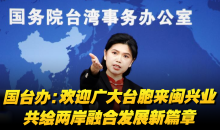 国台办:欢迎广大台胞来闽兴业,共绘两岸融合发展新篇